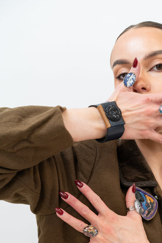 Discover our handcrafted bracelet collection, where bold textures meet graceful movement.