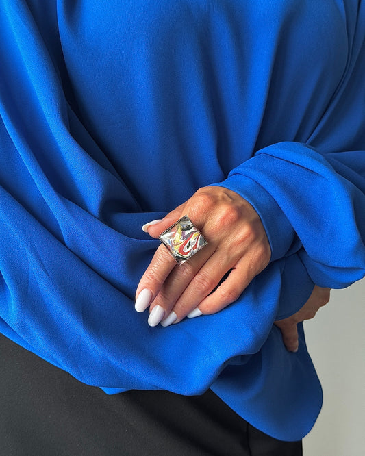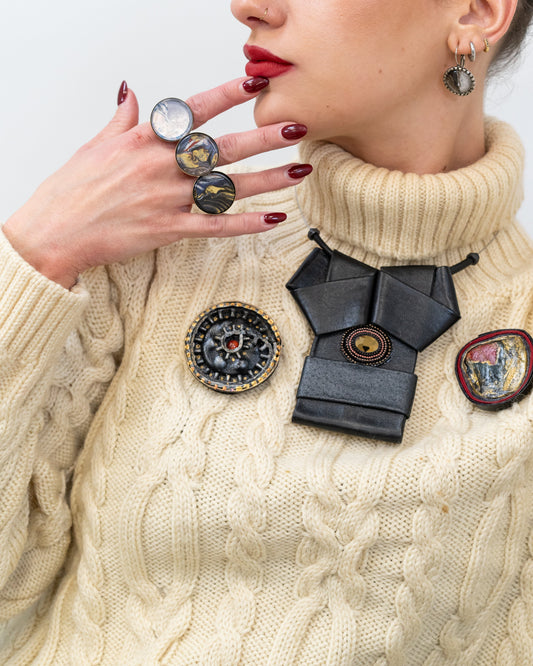 Atraskite mūsų išskirtinę rankų darbo žiedų kolekciją, kurioje menininko spalvų paletė sutinka šviesą.