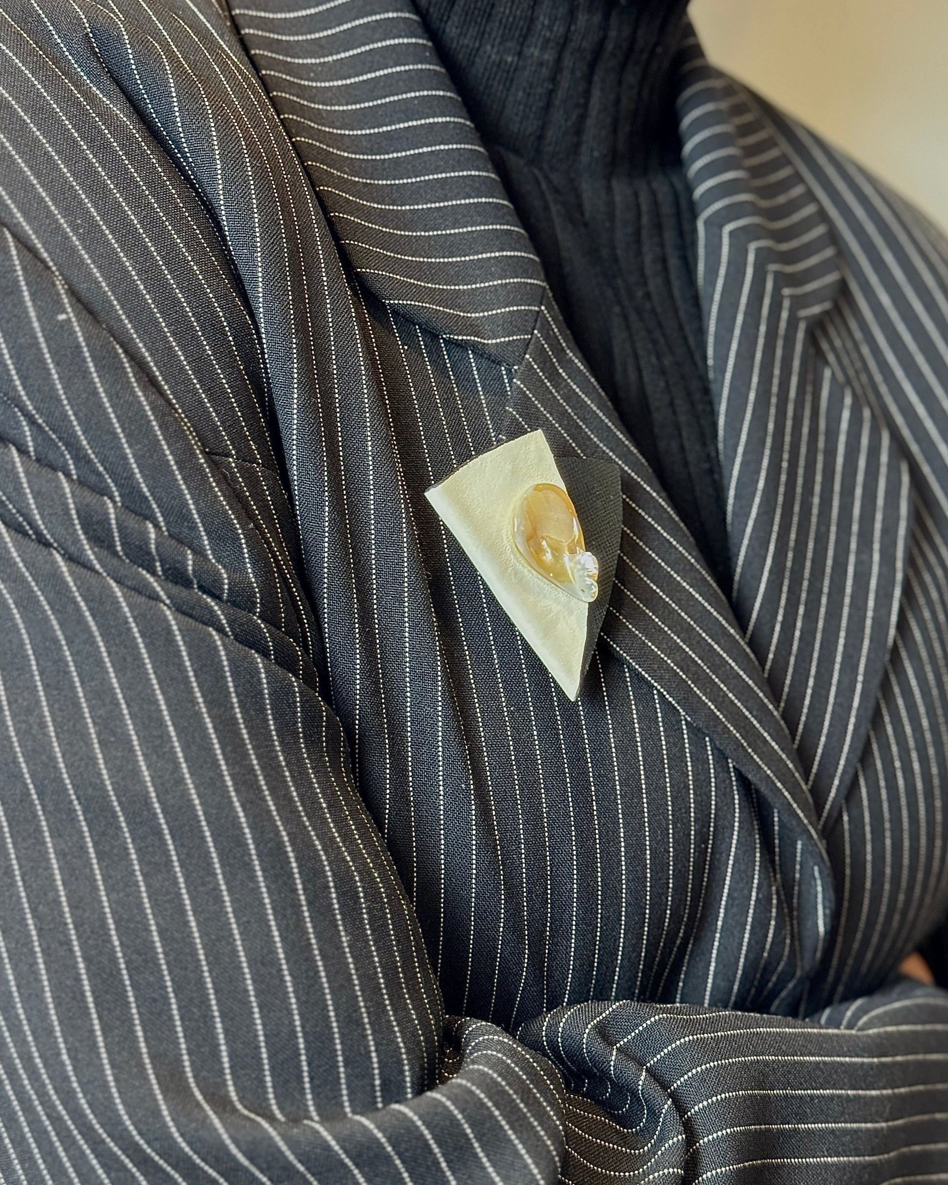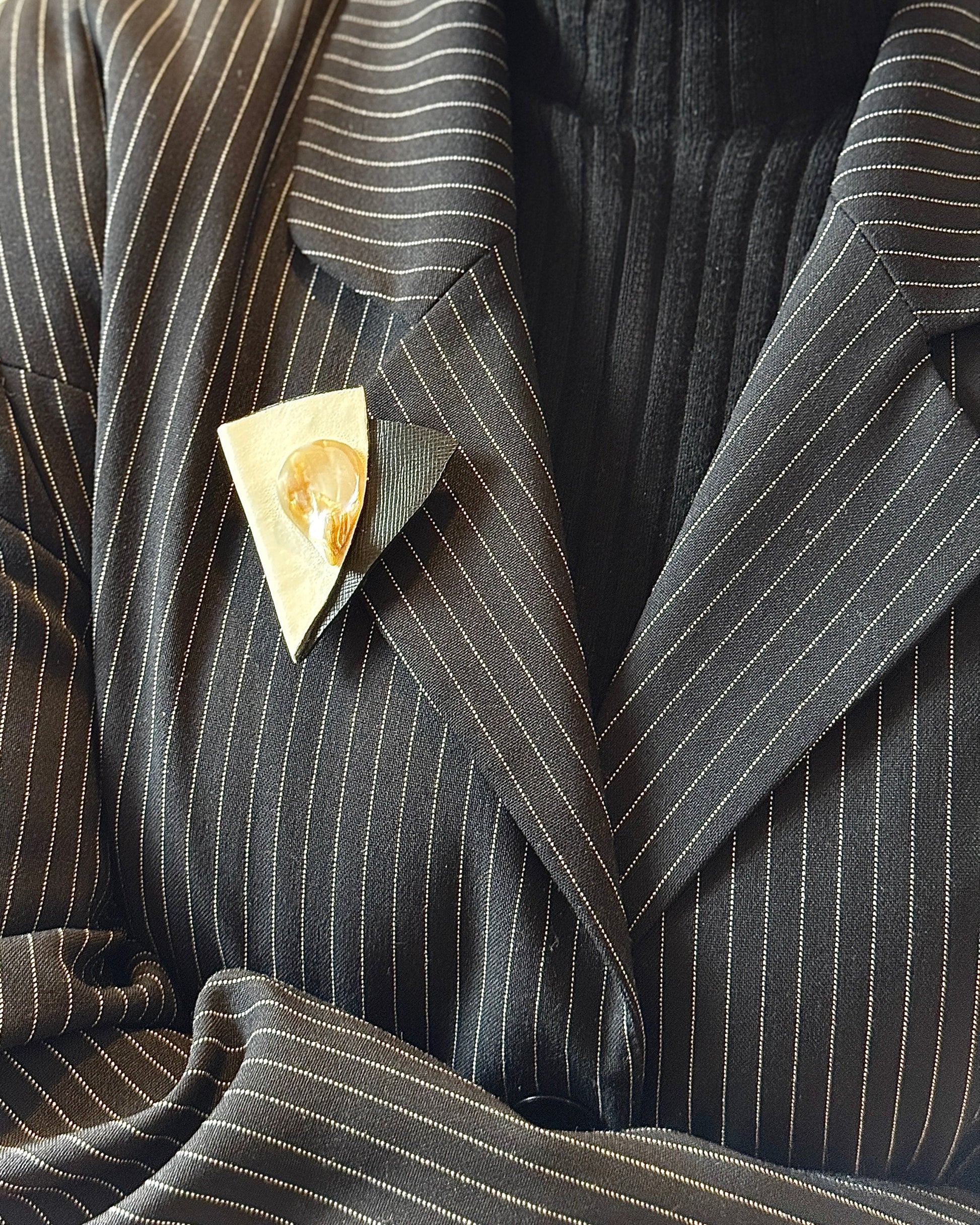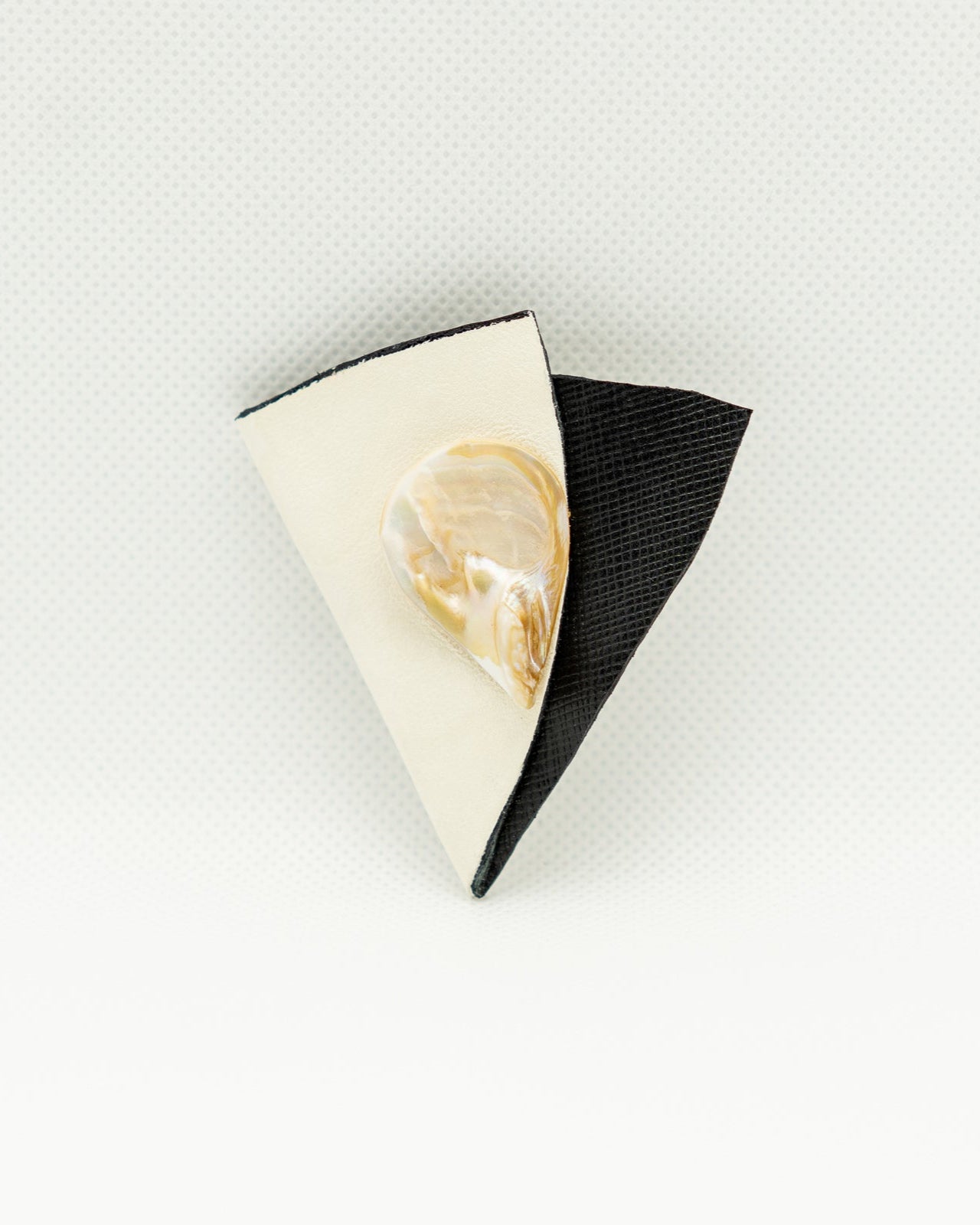 TROTI – minimalistinė sagė, pasižyminti švariu kreminės ir juodos odos kontrastu, elegantiškai paryškinta natūraliu kriauklės formos akcentu. Skulptūriška forma pabrėžia modernų paprastumą ir organišką grožį. Nesenstantis aksesuaras, suteikiantis subtilaus rafinuotumo bet kokiam įvaizdžiui.