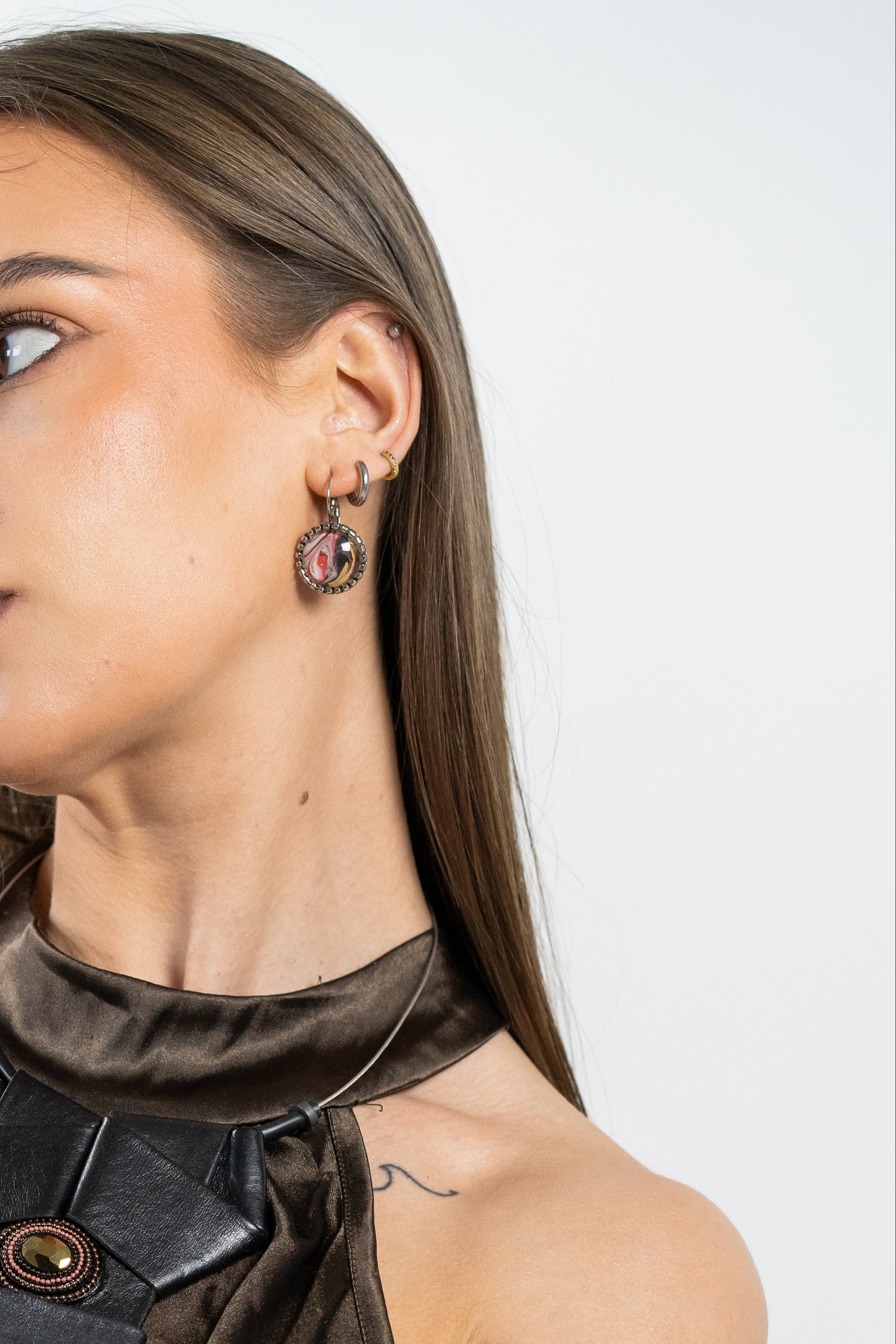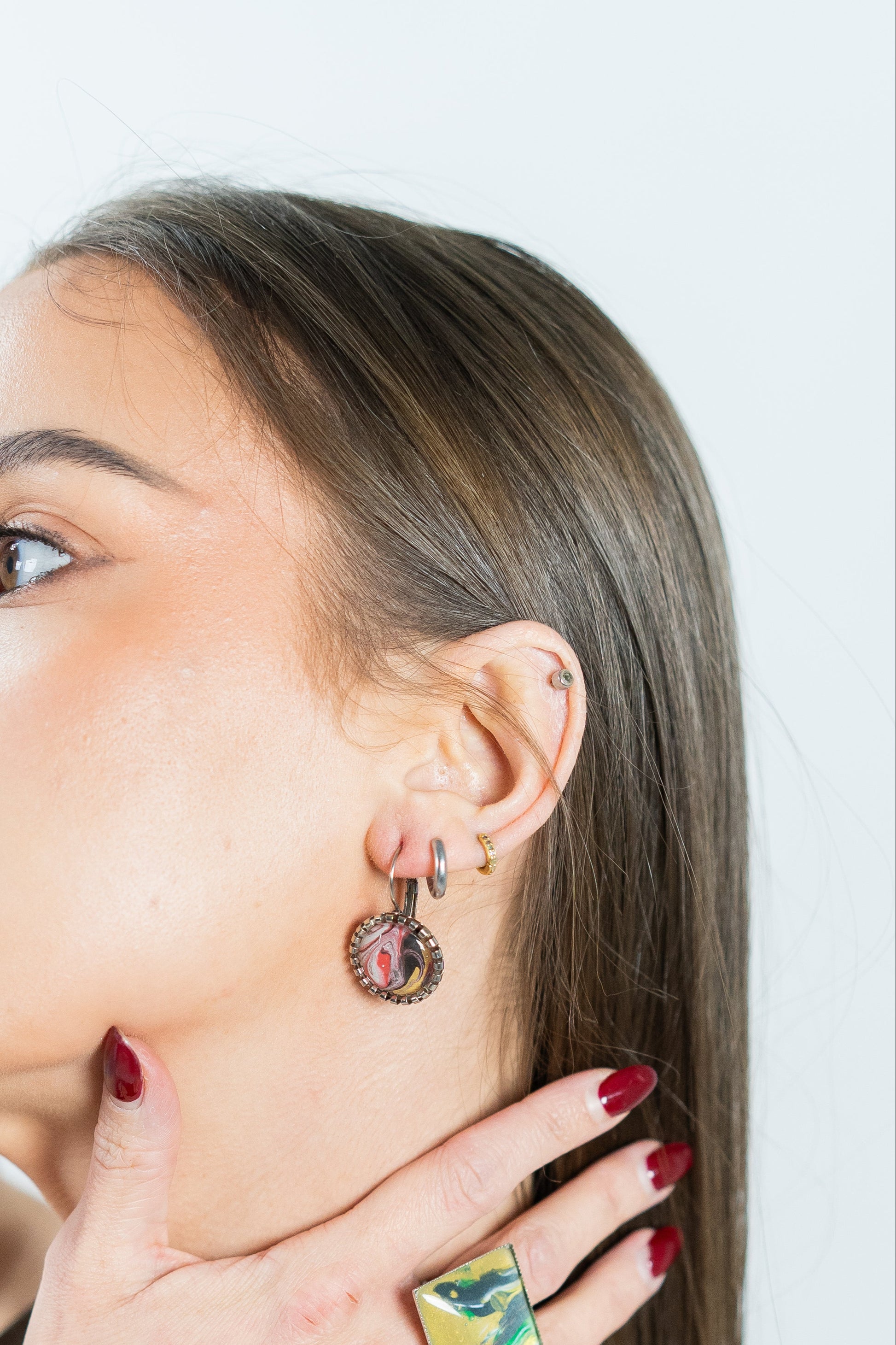 Introducing ETERA - the perfect accessory for any fashion-forward individual. Crafted with high-quality metal and adorned with a unique abstract painting encased in glass, these earrings are sure to make a statement. Elevate any outfit with these stunning and versatile earrings.