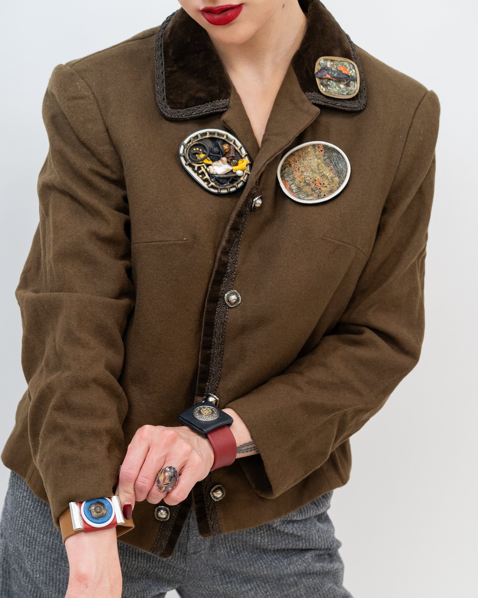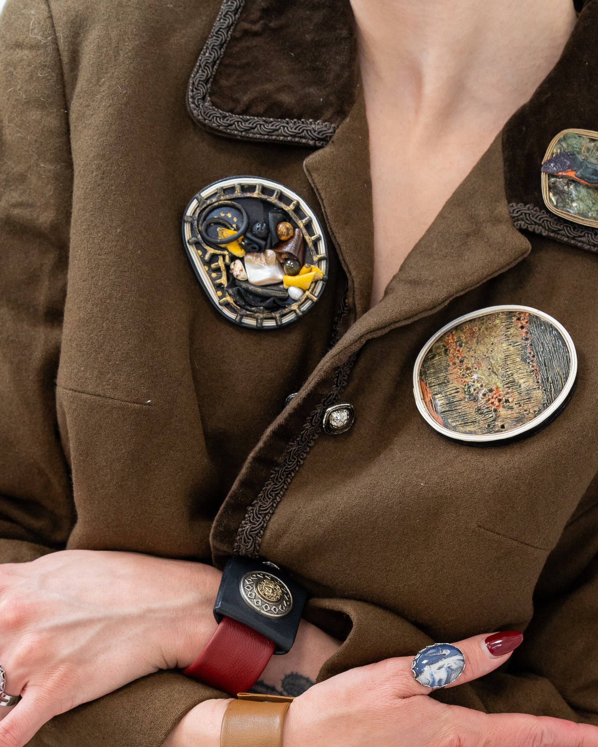 Materials: natural leather, cold porcelain, mixed technique.