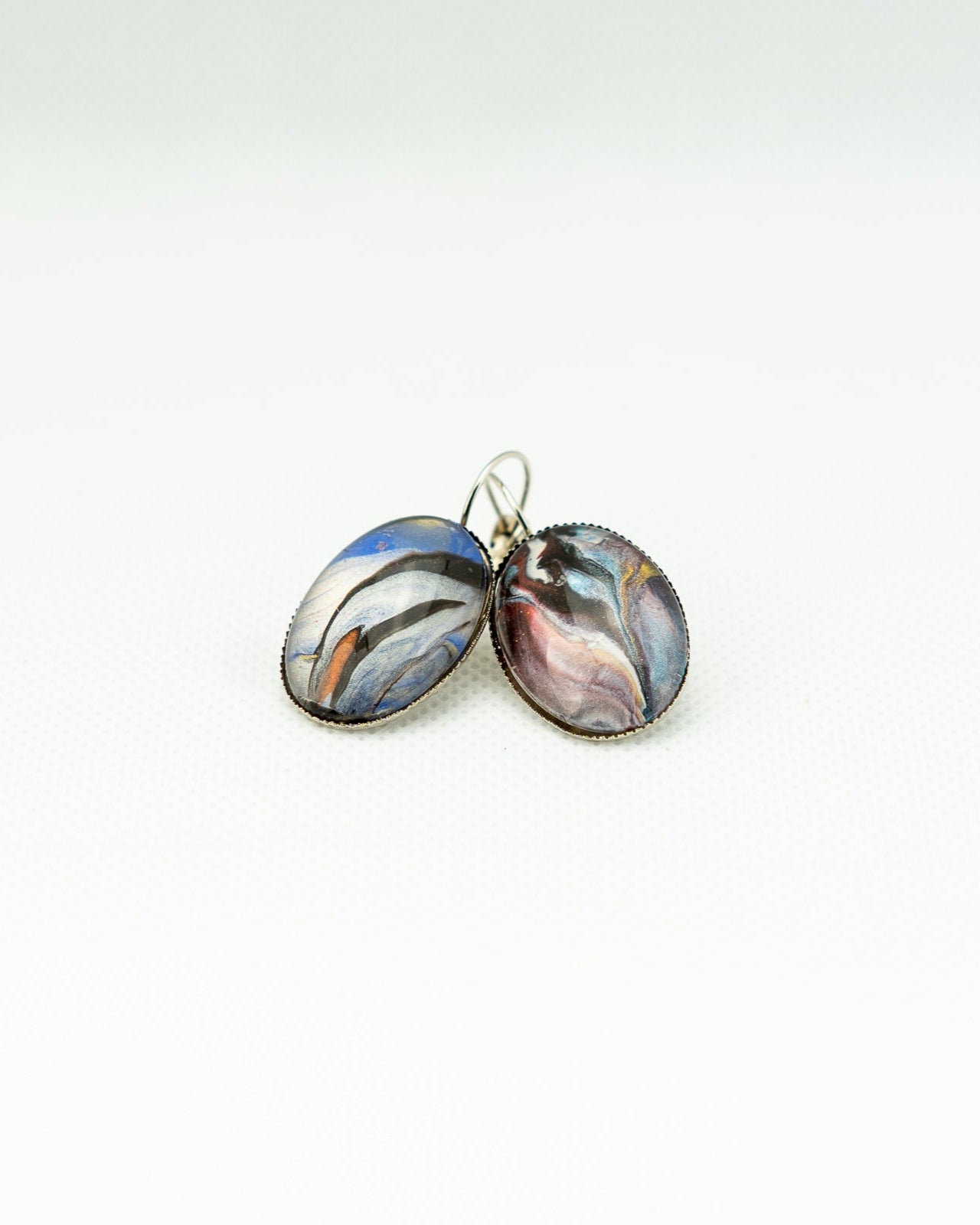 ULUSA - earrings who feature a unique design with an abstract painting encased under the glass. Enhance your look with a touch of artistic flair. Made with expert craftsmanship, this accessory is sure to make a statement.