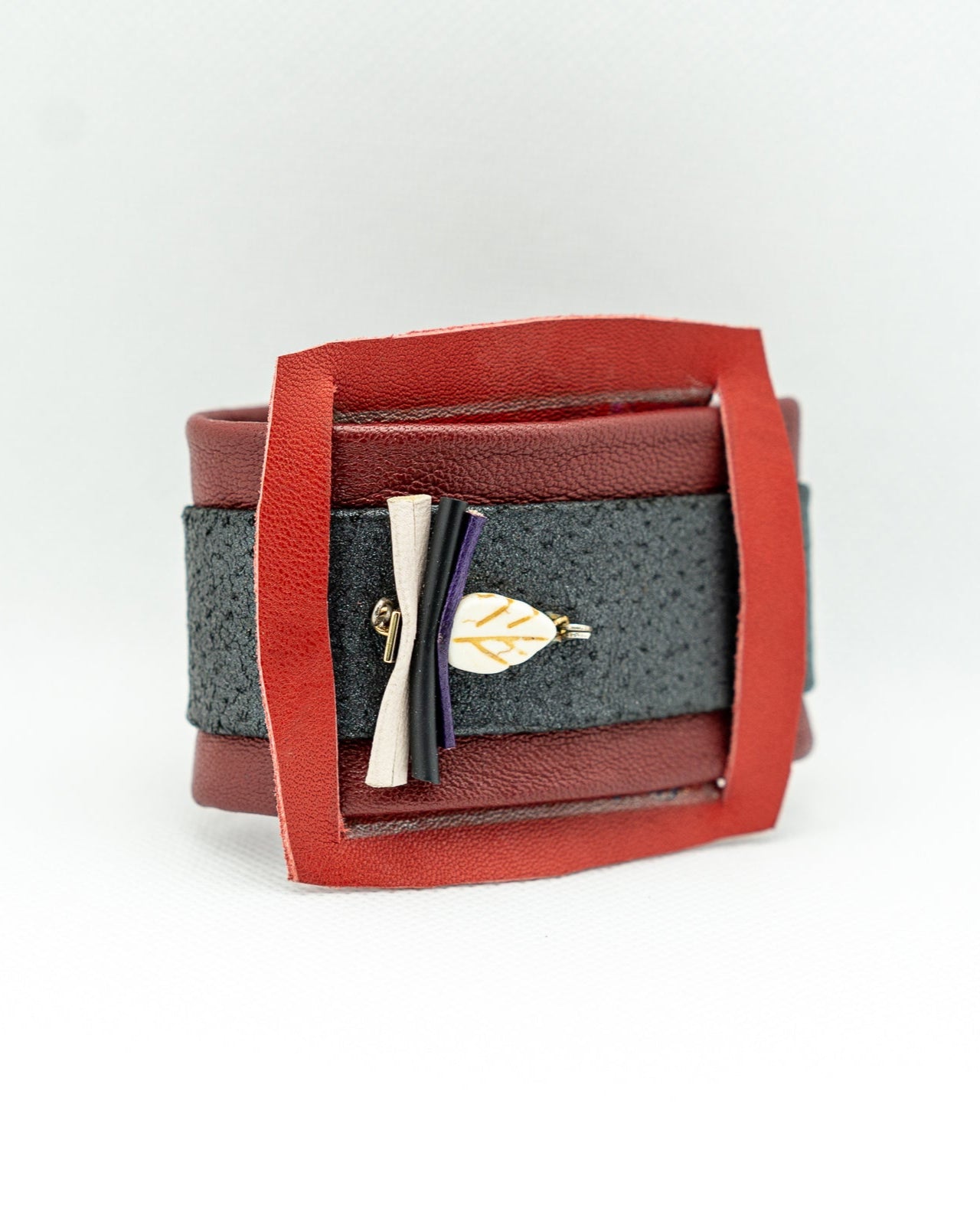 This stylish YGUNE features a bold structure in black and red tones. Made with high-quality leather, it adds a touch of elegance to any outfit. The perfect accessory for those looking for a unique and sophisticated look.